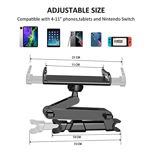 【Wide Compatibility】This Headrest Car Mount Compatible for 4-11 inch devices, such as iPad mini 2 3 4,5, iPad 9.7, iPad pro 10.5, New iPad pro 11, iPad 6th 5th 4th 3th Gen, iPad air 2, 3,4,5, Samsung Galaxy Tab A 10.1 10.5 9.7 8.0, Samsung Galaxy Tab S 8.0 9.7, Samsung Galaxy Tab S4, E-reader, Fire 7, Fire HD 8, Fire HD 10, iPhone 16 15 14 13 12 11 Pro Max XS Mini XR 8 Plus 6 7, iPad Air 4/Mini 4 5 6 2021, iPad 7 8 9th 10.2,Samsung Galaxy S22 S21 S20 and other 4-11 inch devices