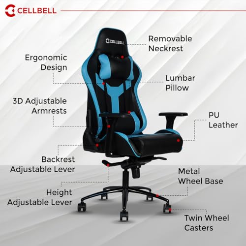 ⚡️ ERGONOMICALLY Outstanding : CELLBELL chair is made of high durable PU leather with removable headrest and back support cushioning. It has a high backrest which ensures proper alignment and support for your back and neck. 8 cms Ultra-Soft seat.