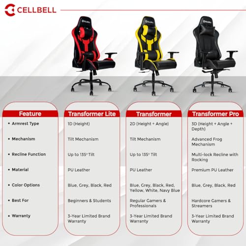 ⚡️ GAMIFIED Experience : CELLBELL is dedicated to make the best gaming chair with large seat area for Intense Gaming sessions! Your experience with our Transformer Series will be absolutely GAMIFIED!