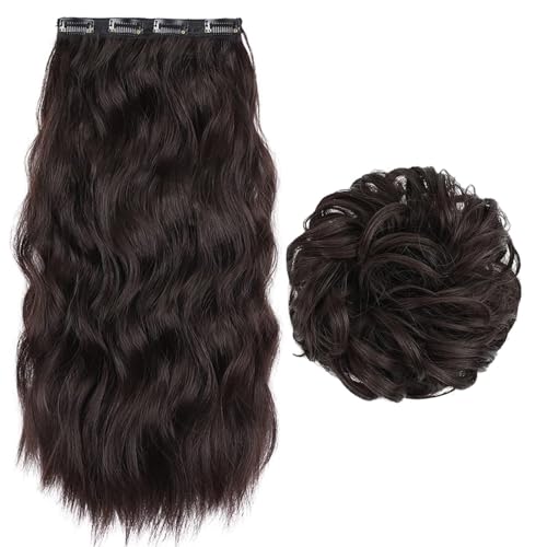 COMBO HAIR EXTENSIONS AND BUN – Includes hair extensions and a pre-styled messy bun, offering multiple styling options in a single set.