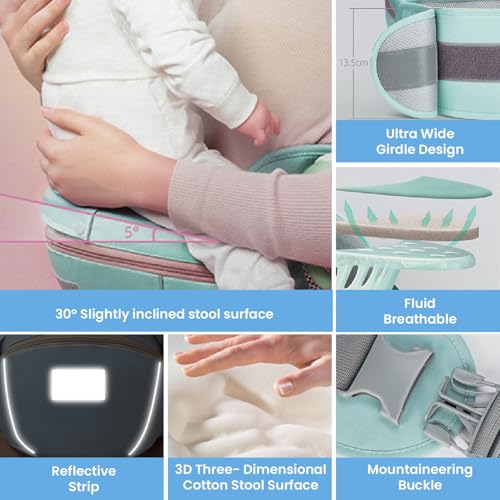 𝐅𝐮𝐥𝐥𝐲 𝐀𝐝𝐣𝐮𝐬𝐭𝐚𝐛𝐥𝐞 𝐟𝐨𝐫 𝐏𝐚𝐫𝐞𝐧𝐭𝐬: Adjustable shoulder straps, waist belt, and safety buckles of baby carrier with hipseat ensure a customized fit for different body types, making it easy and comfortable for both mom and dad to carry the baby.