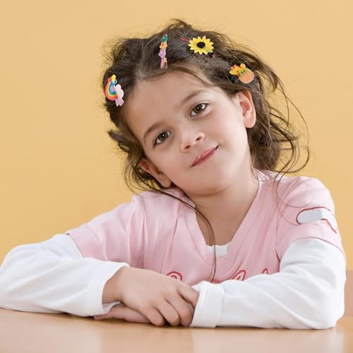 VERSATILE DESIGNS: Includes various types of hair clips suitable for different hairstyles and occasions, perfect for daily wear Made of high-quality silica gel material, will not damage the hair, the small baby clip is also suitable for babies with less hair. With rainbow, unicorn, ice cream designs, come with a metal hair clip in the back, which could held your hair well, easy to wear on or take off.