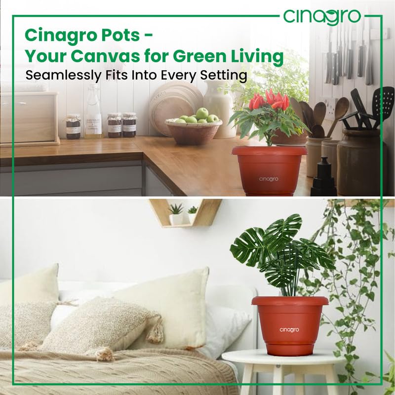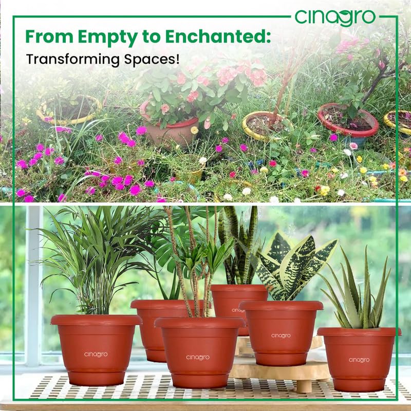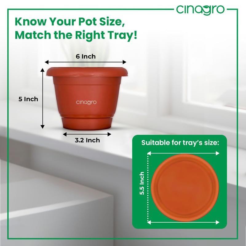 Tray-mendous Match: Cinagro 6-inch Round Pots best fits with an 5.5-inch Bottom Tray. Measure, match, and avoid the wobbly-plant drama.
