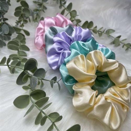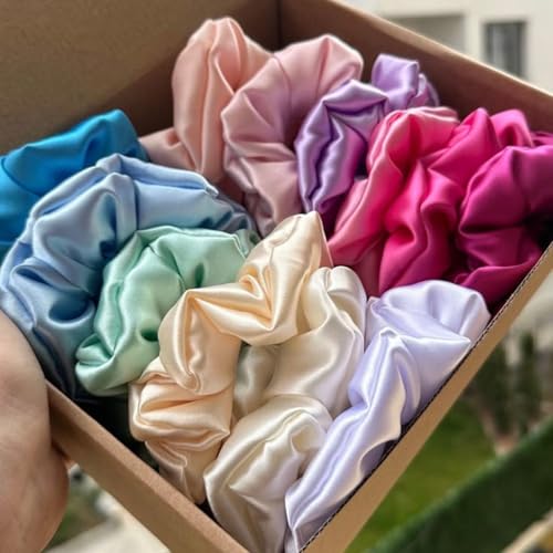 Vibrant Colors: Enjoy a stunning selection of 12 satin scrunchies in a beautiful spectrum of shades — from soft pastels to bold bright. Perfectly match your accessory to any outfit, mood, or occasion.