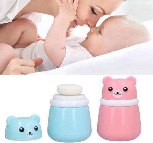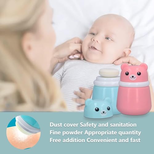 [Powder Puff Box]– This cartoon bear body design powder puff box is very useful and practical, suitable for storing babys talcum powder. Wide bottle mouth to powder and portable, long bottle body does not leak powder.[Baby Powder Bottle]– Supple puff head, high- quality cotton. No latex, no odor, suitable for babys skin. The bottle has a to the puff and talcum powder getting or getting wet.