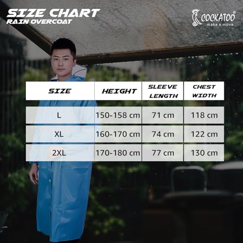 Available in L/XL/XXL for a Comfortable Fit: Our raincoats are available in generous sizes L/XL/XXL, ensuring a comfortable and relaxed fit for a wide range of body types. Whether you prefer a loose or fitted style, our raincoats will accommodate your preferences.