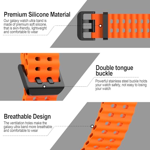 Premium Materials: Made of premium environmental silicone, this galaxy watch ultra strap 47mm is skin-friendly, breathable, lightweight, sweat and waterproof,soft and comfortable to wear