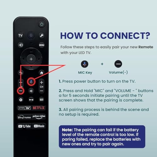 Universal Sony TV Compatibility: Model TX811D remote is compatible with Sony Smart TVs, offering smooth navigation and full control over all your TV’s features, including channel and volume functions.