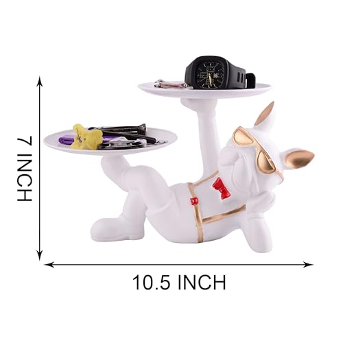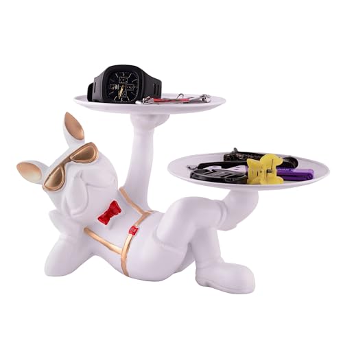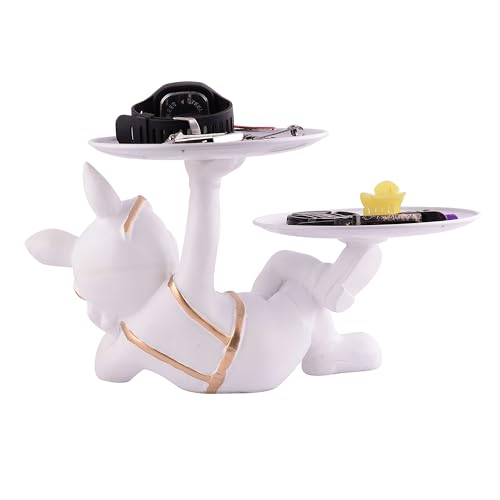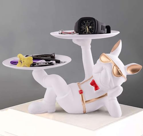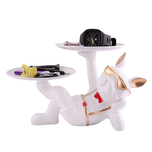Resin Cool Dog Sitting Sculpture Decorative Figurine Storage Tray Entrance Table Key Holder Candy Snack, Juice Glass, Modern Art Statue for Home Desktop Ornament Decoration