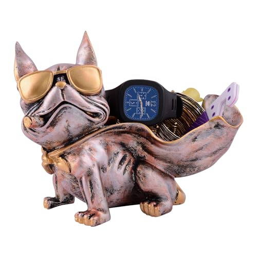 Resin Cool Dog Sculpture Bulldog Storage Tray used for Used as a debris container or candy box, which can store mobile phones, keys, Wallets, glasses, remote controls, etc.