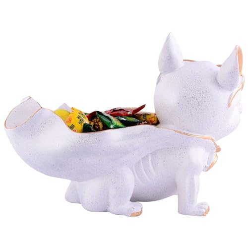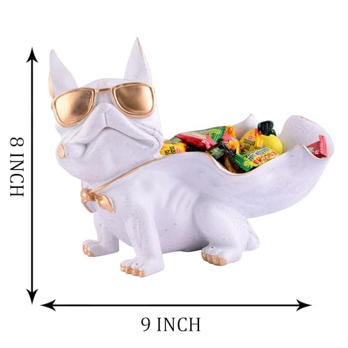 Resin Cool Dog Sitting Sculpture Decorative Figurine Storage Tray Entrance Table Key Holder Candy Snack, Juice Glass, Modern Art Statue for Home Desktop Ornament Decoration
