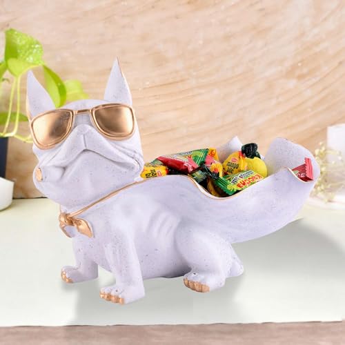Resin Cool Dog Sculpture Bulldog Storage Tray used for Used as a debris container or candy box, which can store mobile phones, keys, Wallets, glasses, remote controls, etc.