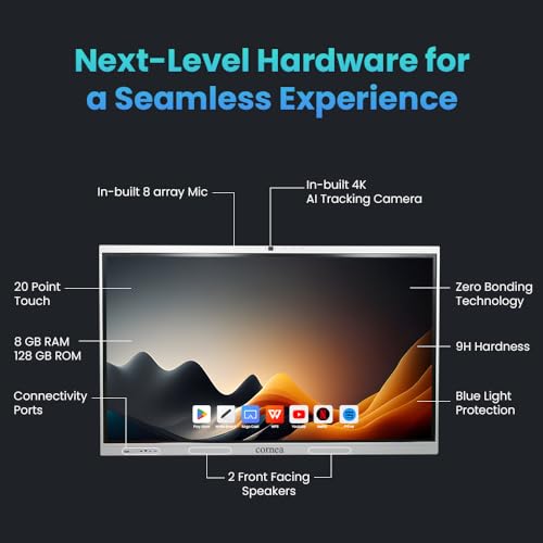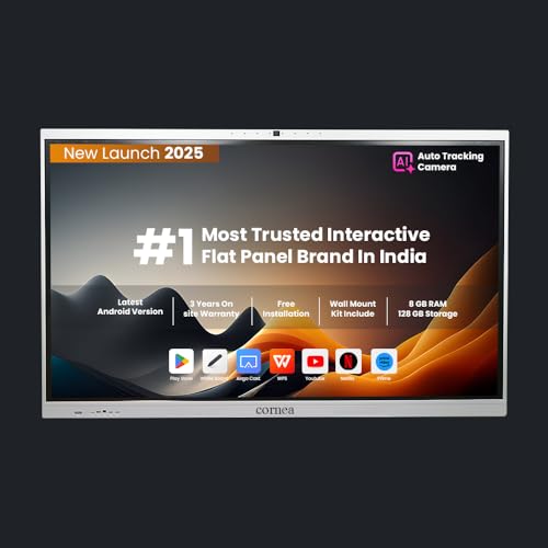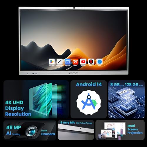 Cornea 98 inches 4K UHD with 48 Mega Pixel Inbuilt HD Camera & 8 Array Mic Touch Display Interactive Flat Panel Monitor 3840×2160 Pixels Latest Android Version Ideal for Office, Institute |8GB 128GB|