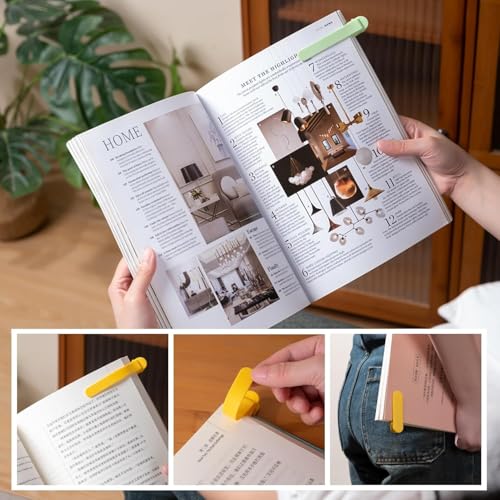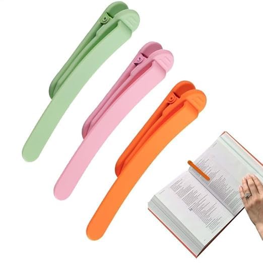 SKIN-FRIENDLY SILICONE MATERIA : Unique patented silicone combined with clip design, protects your favorite books from damage while keeping them in place, unlike the traditional bookmarks that will slide around in your books, and can be washed directly with water for durability.