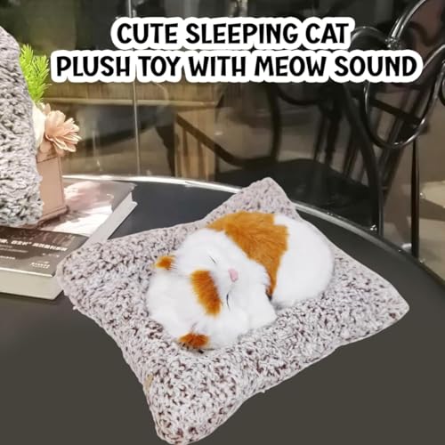 Cute Sleeping Cat Plush Toy with Meow Sound Soft Stuffed Kitten Doll for Kids Car Dashboard Decorative Toy Birthday Gift for Boys & Girls