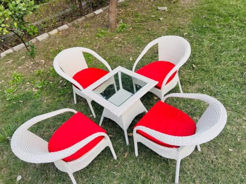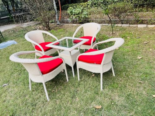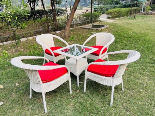 Garden Furniture Set: Features 4 chairs and 1 table with a 24″ x 24″ glass top, crafted for comfort and lasting durability in outdoor spaces.