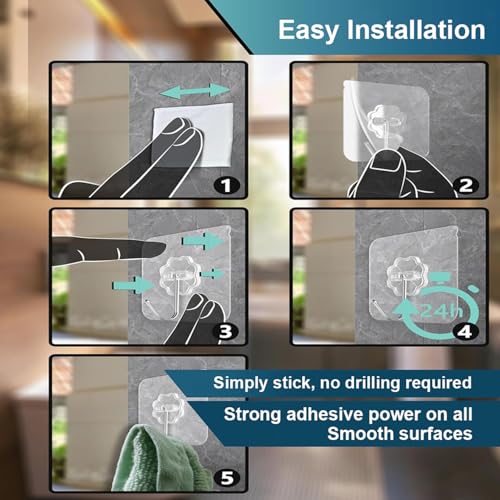 Multipurpose Use – Kitchen, Bathroom & More – Perfect for hanging utensils, towels, loofahs, cleaning supplies, and more. A reliable wall hook sticker solution for smooth surfaces like tile, glass, wood, and metal.