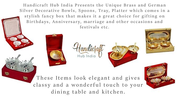 ✨ Elegant Decorative Set – Beautifully crafted brass bowl set with tray and spoon, perfect for enhancing home décor and table aesthetics.