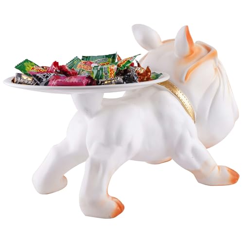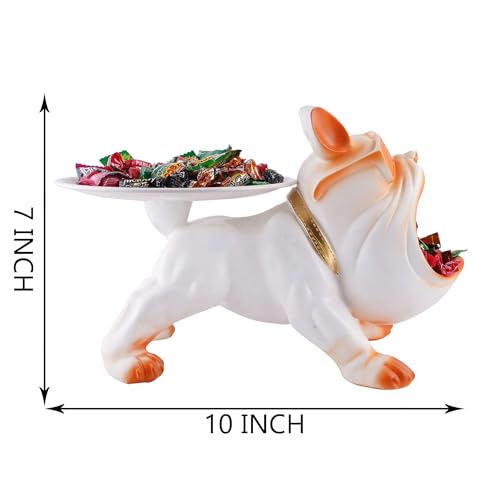 Wonderful Bulldog Showpiece for world living room and living room table decoration; Resin Cool Dog Sculpture Bulldog Storage used for Used as a debris container or candy box, which can store mobile phones, keys, Wallets, glasses, remote controls, etc. Whether on the porch, living room, office, study, Juice, chocolate, Snacks, coffee shop desk, or dining table, it’s a gorgeous decoration.
