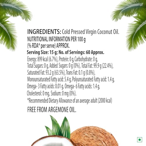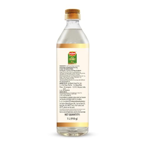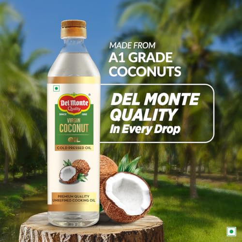 Del Monte Virgin Coconut Oil is 100% pure and unrefined. It is made using A1 grade coconuts found in the southern parts of India. This oil is extracted using the cold pressed method at 35°C, that helps preserve the essential nutrients and naturally occurring antioxidants found in the oil. Thus, making it a perfect choice for both cooking and cosmetic purposes.