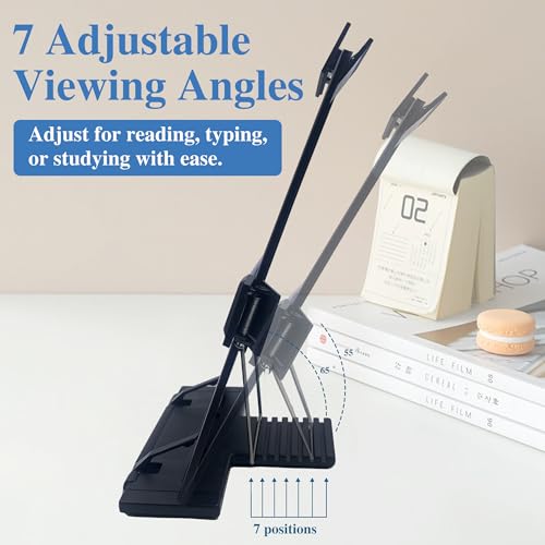Adjustable Viewing Angles:With 7 adjustable positions, you can easily set the perfect angle for reading or typing. Helps reduce eye strain and improves comfort, whether used as a document stand, paper holder, or book stand.