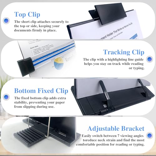 Stable Document Fixation: Top clamp and two bottom clips keep your pages firmly in place. sliding tracking clip lets you follow lines of text easily—ideal for copy typing, studying, and reading.