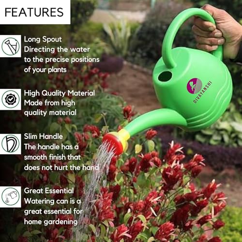✔️ Durable & Lightweight Material – Made from high-quality, BPA-free plastic, this garden watering can is sturdy, long-lasting, and easy to carry even when full.