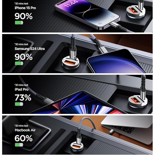 【Widely Compatibility】Our USB C car charger is compatible with all Android and iOS mobile devices, such as latest smartphones iPhone 17/16/15/14/13/12/X/XS/XS Max/XR, iPad/iPad Pro/Macbook Air/Macbook Pro, Samsung S24/S23/S22/S21/Z Flip 6/5/4/3 Series, Note 20/10 Series, 12/11/10/9 Series & other fast charging compatible devices.