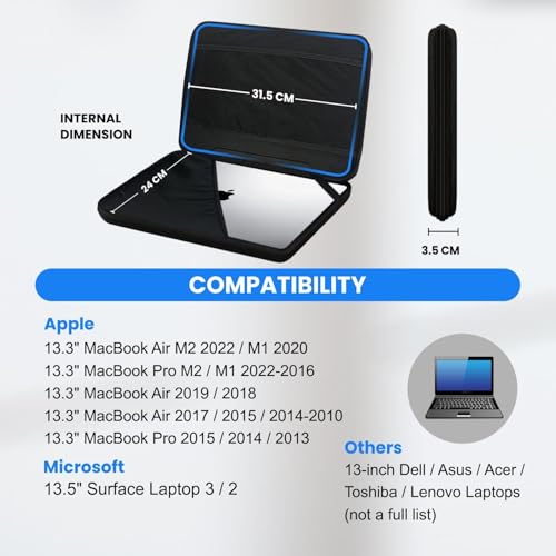 Broad Device Compatibility:Designed to fit 13.6-inch, 13.3-inch and 13-inch laptops perfectly—ideal for MacBook Pro/Air M2, M1, Dell, HP, Lenovo, ASUS, Acer and more.