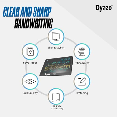 Versatile LCD Re-Writing Tablet: The Dyazo 15-inch LCD writing pad offers a smooth and pressure-sensitive screen, allowing users to write, draw and doodle effortlessly, making it ideal for kids, students and professionals.