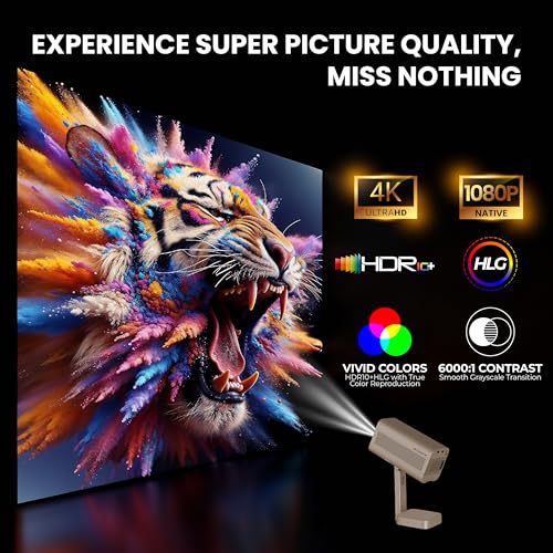 【Native 1080p | 4X Brighter | 4K HDR support | Fully Auomatic】 : Small is the new BIG, the Atom 4X Plus 2026 Upgraded model in stunning Gold is a visual Marvel with 1080p Native , HDR + HLG and 4X brighter at 400 ISO Lumens equivalent or better than chinese brands claimed but unverifiable 11,000 lumens. The 6000 : 1 Contrast deliveres a visual Feast on Massive 762cm (300″) Screen Size. LTPS Wide Screen LCD (16:9) & EGATE’s “Life Long Lamp” – 60000 Hours.