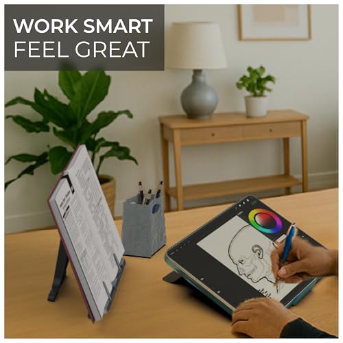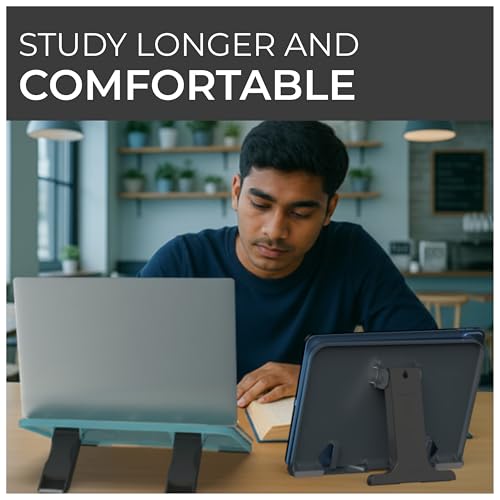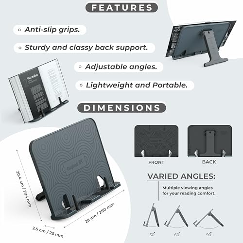 PORTABLE, ROBUST, LIGHTWEIGHT and ADJUSTABLE the EasyRead provides relief from neck, shoulder and back pain which may be a result of bad posture while reading. Using the EasyRead reading stand holder helps AVOID EYE FATIGUE and HEADACHES which may be caused due to reading at wrong angles. It provides a varied RANGE of VIEWING ANGLES at 30, 60 and 90 degrees for your reading comfort.
