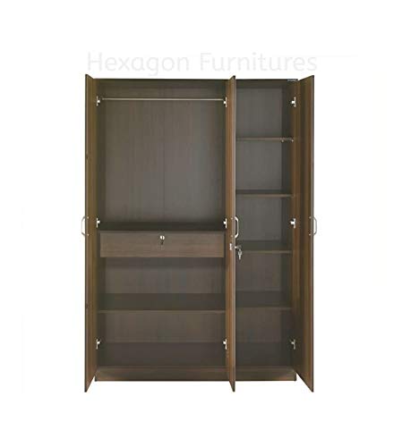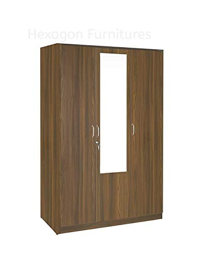 Engineered Wood 3 Door Wardrobe with Full Mirror (Walnut Finish)