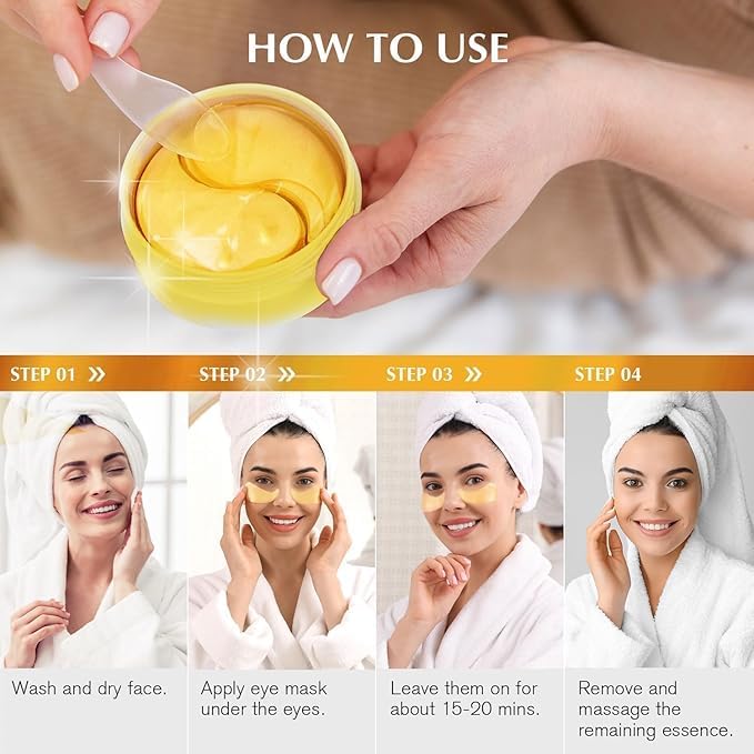 Eye Cream patch 24k gold creamed patch, wrinkle care, anti-aging, skin elasticity, pigmentation, brightening, retinol, for Woman And Men Pack-60. (Gold Eye patch, 60-patch)