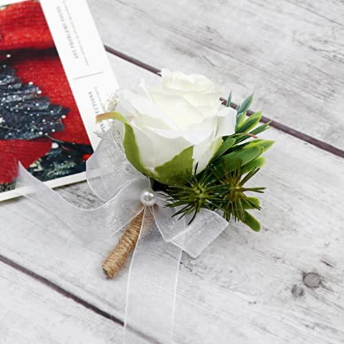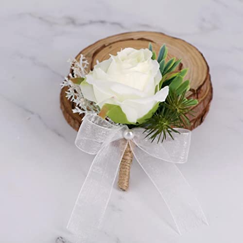 Handcrafted groom bride bridesmaid boutonniere corsage artificial flower brooch pins.