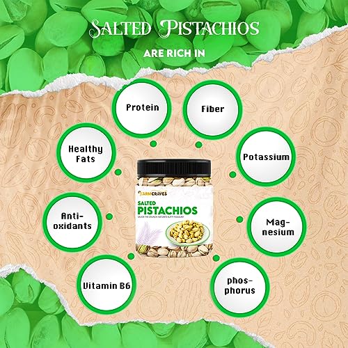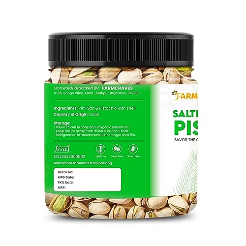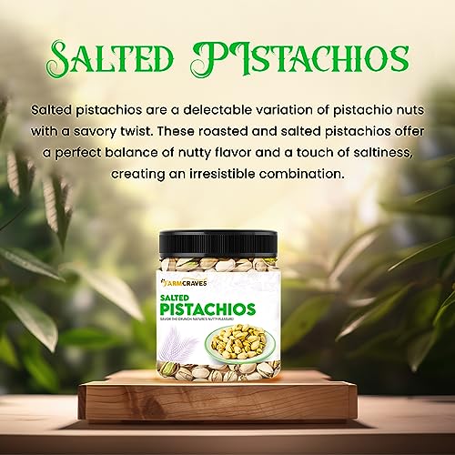 Premium Quality Pistachios: Farmcraves Salted Pistachios are sourced from the finest pistachio orchards to ensure you get the highest quality nuts. Each pistachio is carefully selected, roasted to perfection, and lightly salted to bring out its natural flavor.