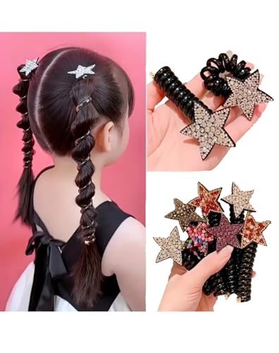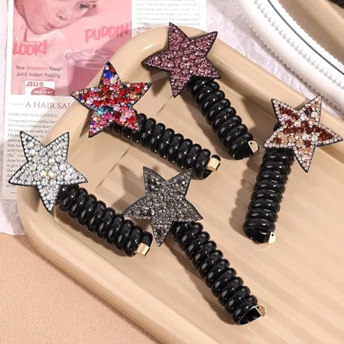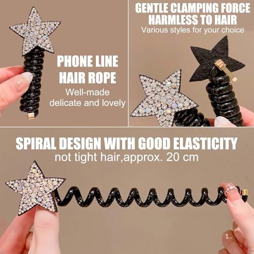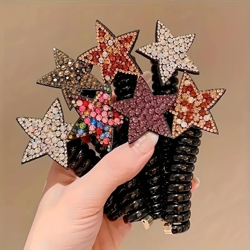 Pack of 5 Stylish Rhinestone Hair Ties for Every Occasion – This set includes 5 premium spiral hair ties with an elegant rhinestone star design, adding a touch of glamour to your everyday hairstyles. Perfect for college, office, parties, weddings, and festive looks.