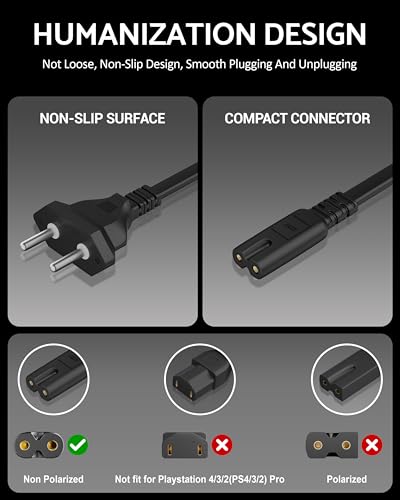 ▶ Wide Compatibility: Fedus AC power cable is compatible with most models of TV, PS4/PS5, Printer, and other 2-pin power devices.Universal Power Cord for PS4/PS5, printer, mini fridge, ring light, LG TV, TCL TV, sharp TV, Hisense TV, and more. It’s universally compatible and works with devices with 2-pin shroud power connectors.