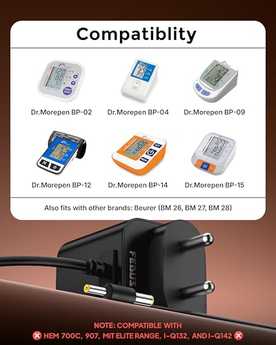 ▶ STOP! CHECK COMPATIBILITY FIRST (Zero Return Guide): Before buying, please check your device label. This adapter is specifically engineered for Dr. Morepen Blood Pressure Monitors requiring DC 6V. It includes a Universal Dual-Pin System (Standard 5.5mm & Precision 4.0mm), ensuring a 100% snug fit for popular models like BP-02, BP-09, BP-12, and BP-14. (WARNING: Not compatible with models using USB/Type-C charging).