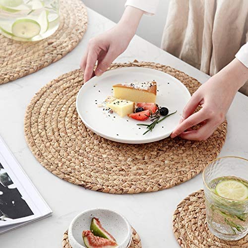 SIZE- 30 CM Round Diameter (Pack of 4), Can be used as placemats, bed side table toppers, corner table mats or trivets for hot dishes.