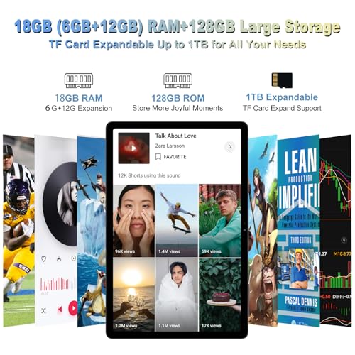 Powerful performance with ample storage: Powered by Unisoc T616 Octa-Core 2.0GHz processor, along with 18GB (6GB + 12GB extension) and 128GB ROM, supporting TF card expansion up to 1TB, this tablet effortlessly handles multitasking and storage needs