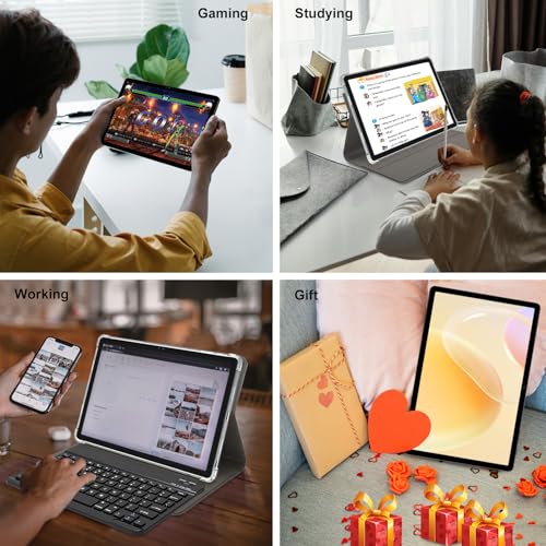 Comprehensive Accessory Pack: The tablet comes with a leather case, wireless keyboard (charge with the included charger), capacitive pen, screen protector, OTG cable, power adapter, and a TF card ejector tool. This all-inclusive package saves you time and money on finding accessories and turns your tablet into a versatile 2-in-1 device, combining the functionality of a laptop and tablet for increased productivity and protection