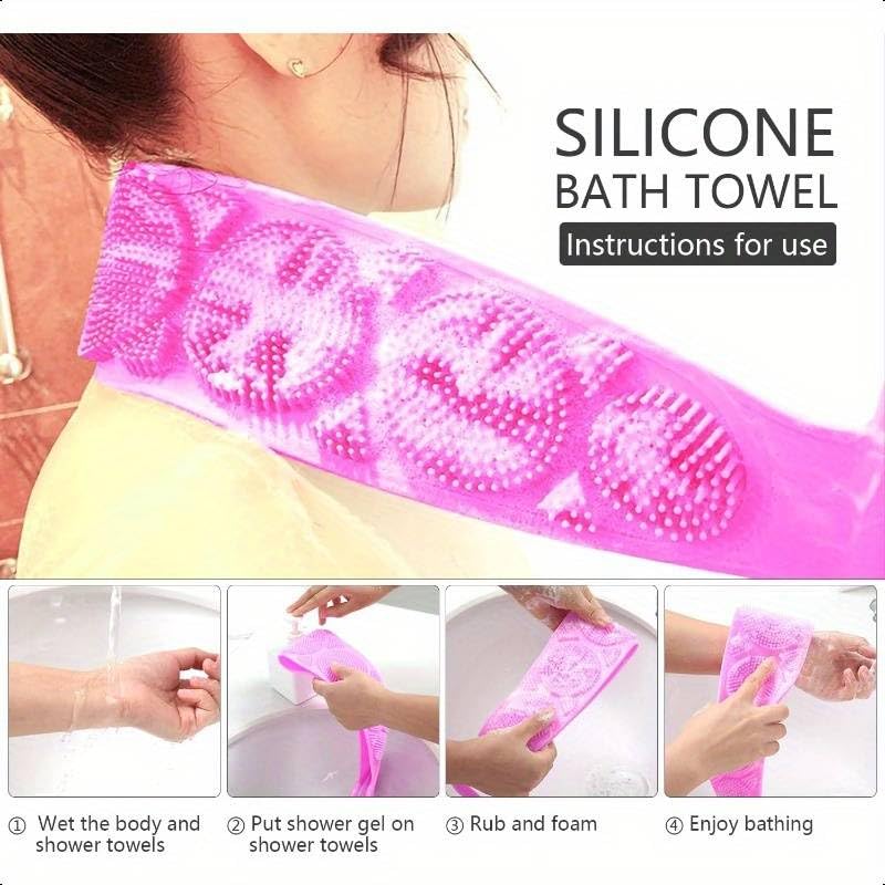 GOOD QUALITY MATERIAL: The shower scrubber is made of food-grade silicone, healthy and environmentally friendly, free of BPA and no harmful substances. It has high-temperature resistance that is safe and durable. The product size is (LxW) 70x12cm and is easy to clean that can effectively exfoliate and massage the skin which is more hygienic.