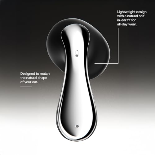Comfortable Half In-Ear Earbud Design – The half in-ear design offers a natural, pressure-free fit, making these wireless earphones comfortable for long hours without ear fatigue.