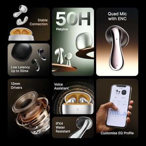 Crystal-Clear Calling with Quad Mic ENC – Enjoy clear and uninterrupted conversations with quad microphones and Environmental Noise Cancellation (ENC). These TWS wireless earbuds focus on your voice while reducing background noise for better call quality.