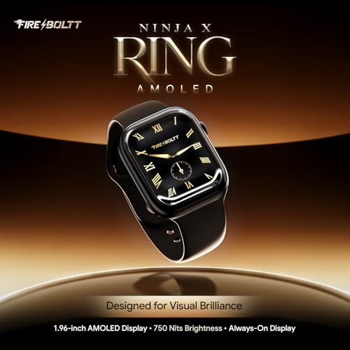 Fire-Boltt Ninja X Ring AMOLED Smart Watch 1.96″ Super AMOLED Display Bluetooth Calling, Voice Assistant, SpO2 & Heart Rate, 120+ Sports Modes, IP67 Waterproof Smartwatch for Men & Women – Solid Black