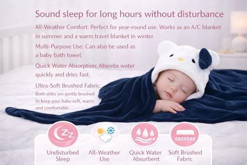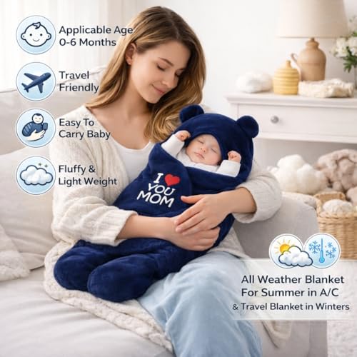 Color : NavyBlue (Color May Slightly vary Due to Photographic Lighting), Material : Coral Fur Outside & Sherpa Inside, Use: Multipurpose as baby blanket, baby wrapper, baby Sleeping Bag, Baby Bath Towel”. Use: Multipurpose as baby blanket, baby wrapper, baby Sleeping Bag, Baby Bath Towel