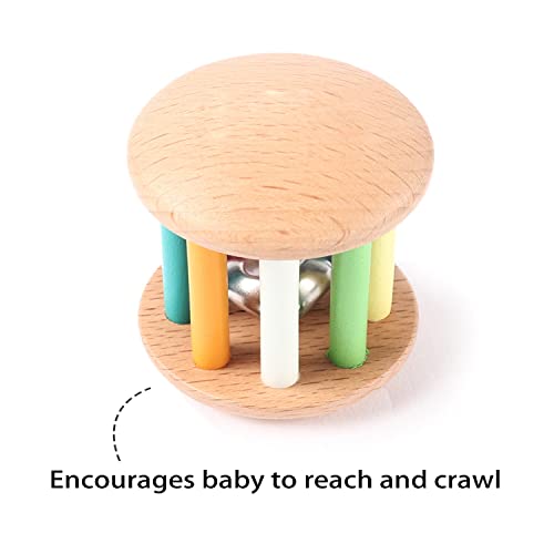 Encourages baby to reach and crawl & Stimulates tactile and auditory sense.