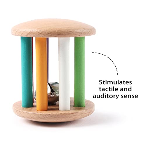 Encourages baby to reach and crawl & Stimulates tactile and auditory sense.