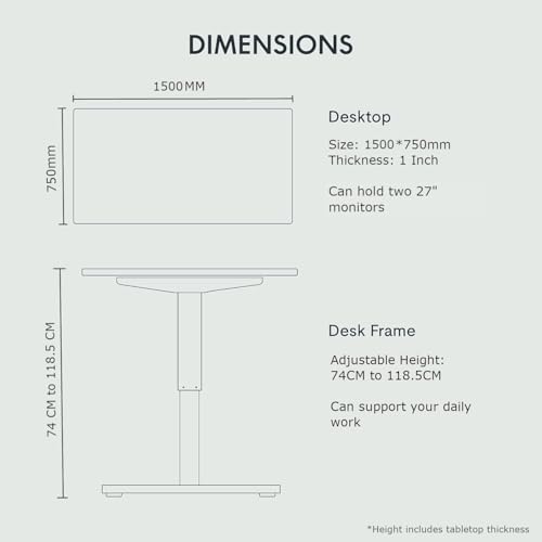 Quiet, Strong & Durable Construction: Features a silent dual-stage motor with a load-bearing capacity of 70 KG. Built with a strong steel frame and a high-quality engineered wood tabletop for longevity.